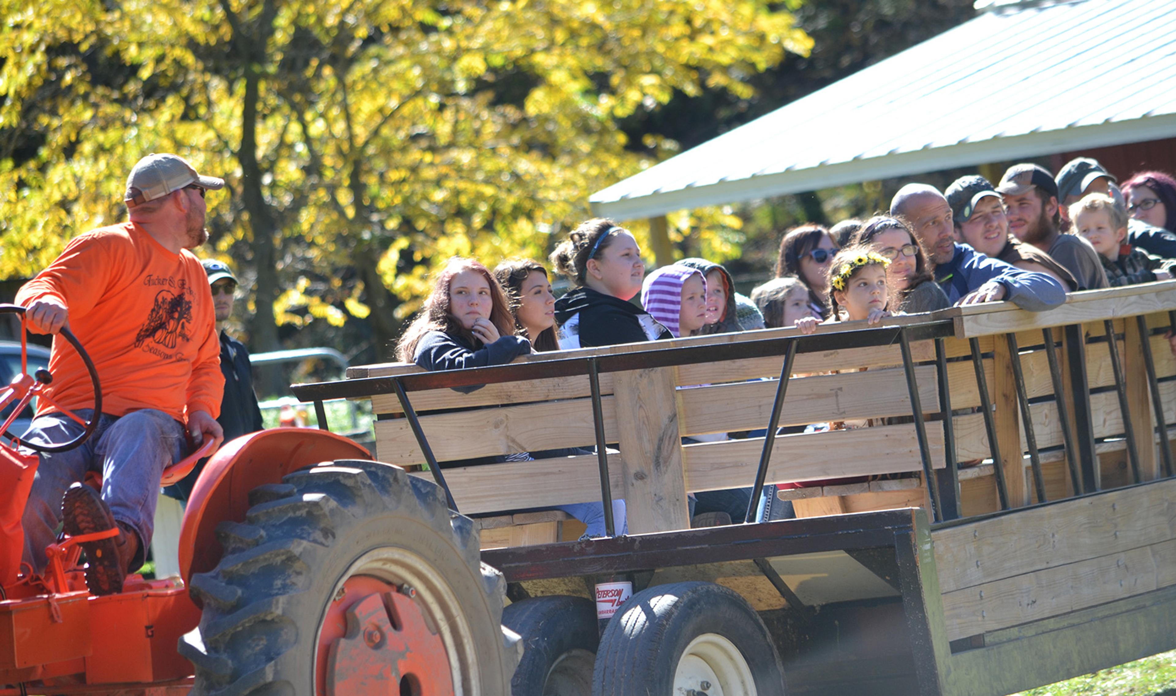 Every October, thousands of families from counties all around bring their kids here. At first, they come to pick pumpkins, but they return year after year in droves for the magic. Tucker, a sometimes-schoolteacher, seems to know everyone by name. His made-up stories trick laughs from the shyest toddlers. Families line up and wait for his tractor hayrides through the bustling pumpkin patch, into the cooling air of the woods, past Tucker’s farmhand playing the part of an old miner panning the creek for gold, past gaggles of ghouls and skeletons.