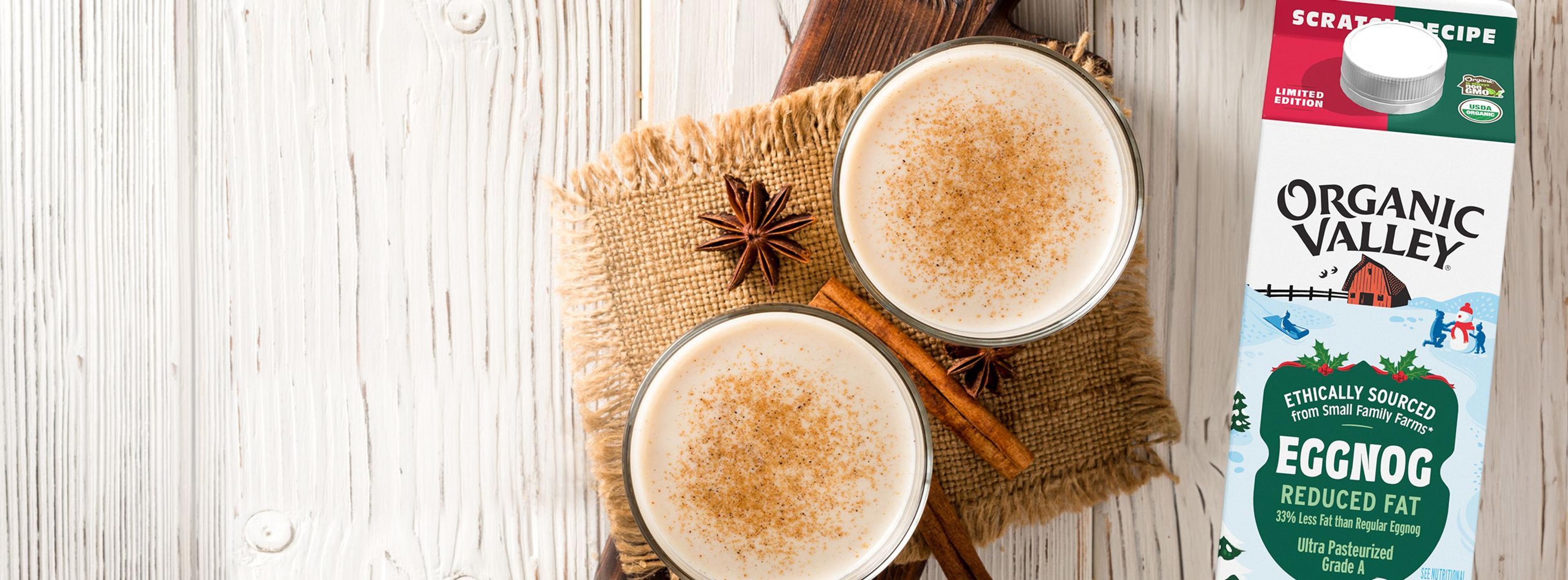 Organic Valley Eggnog is a seasonal dairy-based beverage that is most often consumed around the winter holidays. Eggnog is a delicious, satisfying blend of organic milk, sugar, cream, egg yolks, natural flavor, nutmeg and Gellan gum.